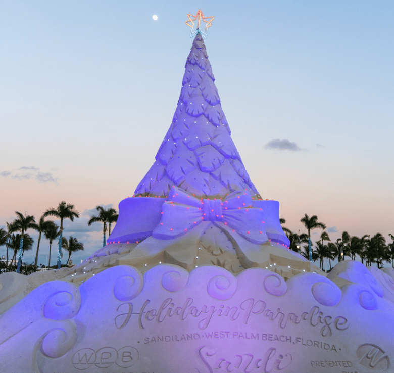 Holiday in Paradise kicks off as crews sculpt 850 tons of recycled sand into the 35-foot Sandi Tree. Catch the first lighting at Clematis by Night on December 4, featuring live music and family fun. Learn more →